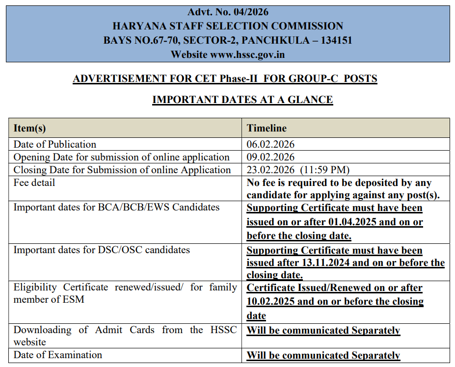 • Official Website: www.hssc.gov.in